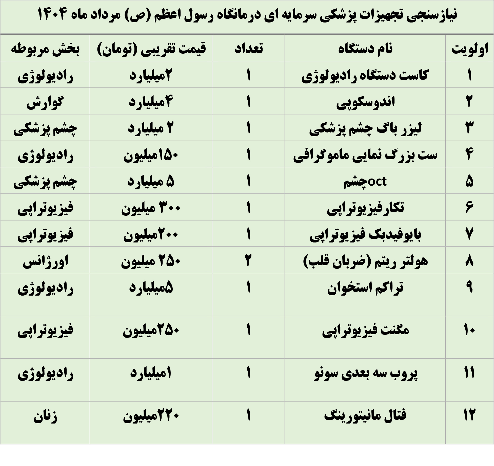 درمانگاه خیریه امامی راد بعنوان بزرگترین درمانگاه خیریه استان فارس به منظور خرید برخی از تجهیزات مورد نیاز خود برای ارایه خدمات بهتر به بیماران، نیازمند برخی از تجهیزات جدید است که فهرست آن را در اینجا ملاحظه می فرمایید.برای اطلاعات بیشتر با شماره 09176871596تماس بگیرید.