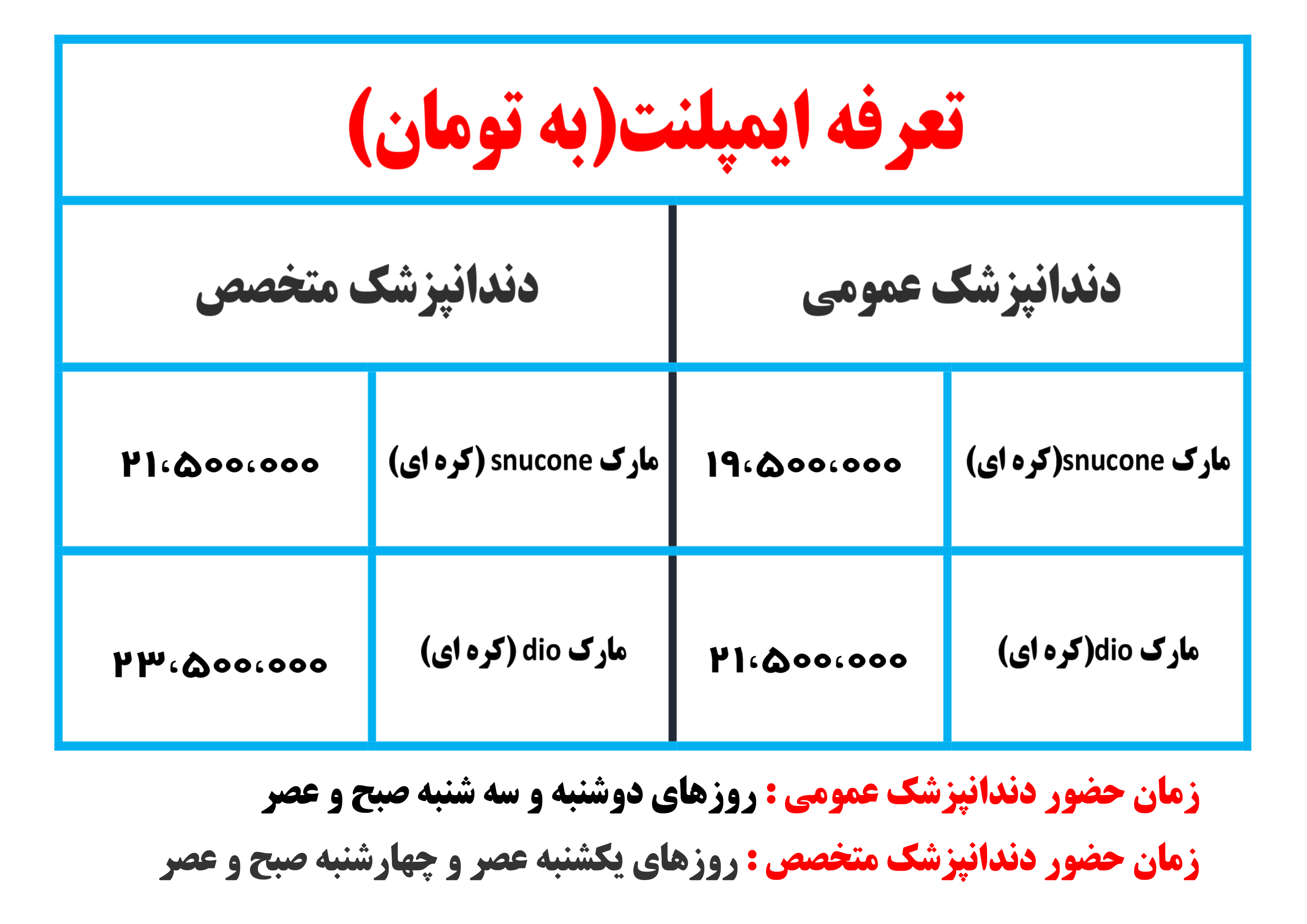 تعرفه ایمپلنت :
