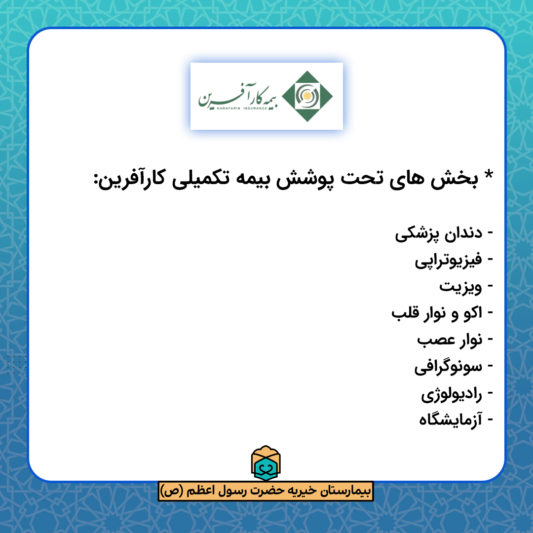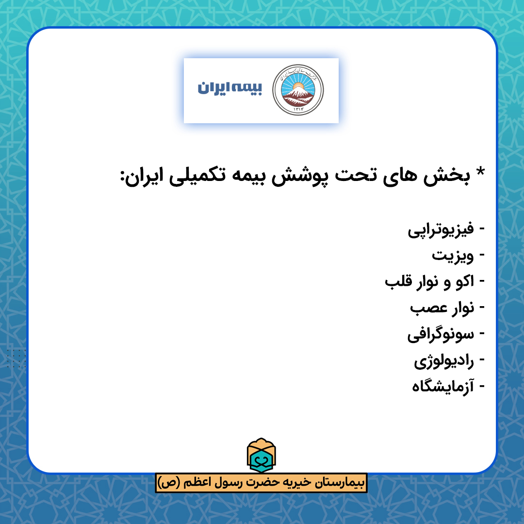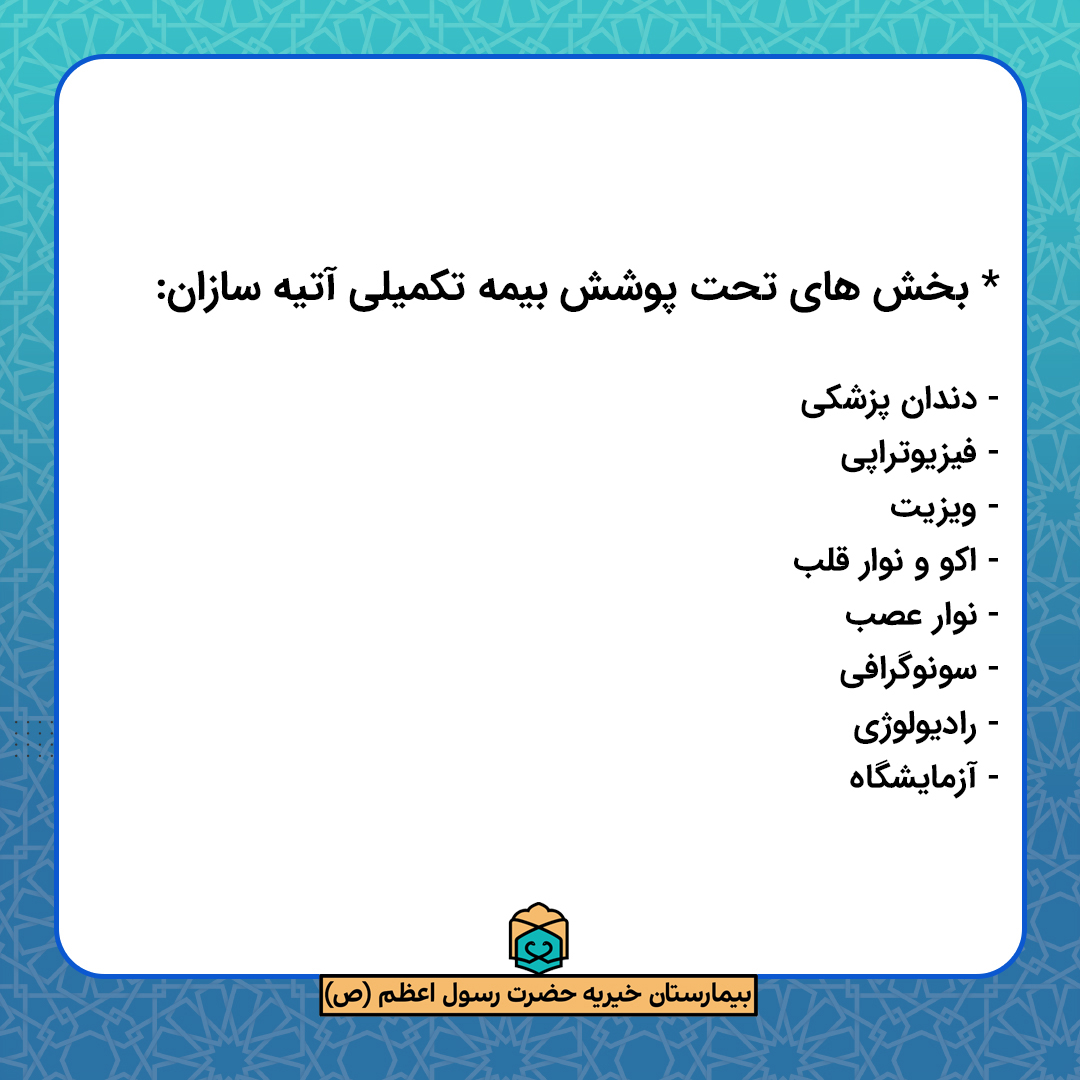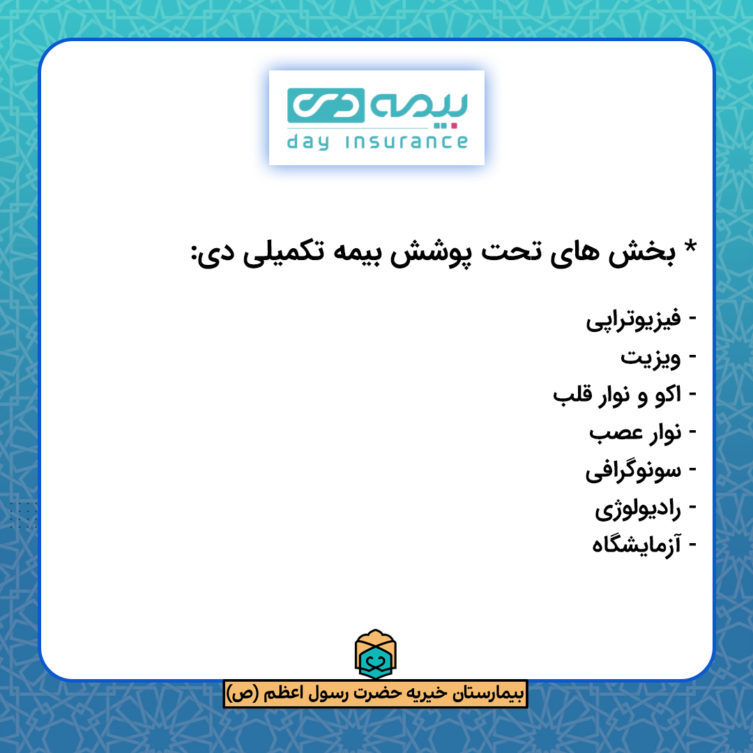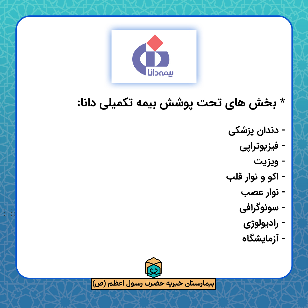 6 اسفند شنبه, 06 اسفند,1401 انعقاد قرارداد با بیمه های تکمیلی به منظور رفاه حال مراجعین گرامی، درمانگاه خیریه دکتر امامی راد با بیمه های تکمیلی دی، آسیا، پاسارگاد، کوثر، البرز، دانا، کارآفرین، ایران و آتیه سازان طرف قرارداد بوده و همشهریان گرامی می توانند از خدمات این بیمه های بهره مند شوند. گالری تصاویر برچسب ها: اخبار درمانگاه بیمه های تکمیلی درمانگاه خیریه شبانه روزی دکتر امامی راد بیمه های طرف قرارداد